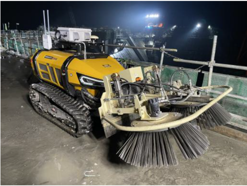 「ダム工事のコンクリート打設後に発生するレイタンス(表面の微細な汚れ)を、自動でブラッシング・洗浄し、高品質な打ち継ぎ面を形成する自動施工システム」 とされています。