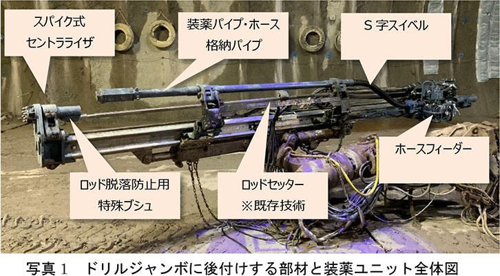 「既存のドリルジャンボに搭載可能な本装薬ユニットと、無線電子雷管対応の爆薬装填装置『T-クイックショット』を組み合わせることで、オペレーター1名が運転席から一連の作業を連続して行うことができる。これにより、切羽近傍への立ち入りを不要にし、安全性と生産性を大幅に向上させる技術である。」 (引用:大成建設 プレスリリース)